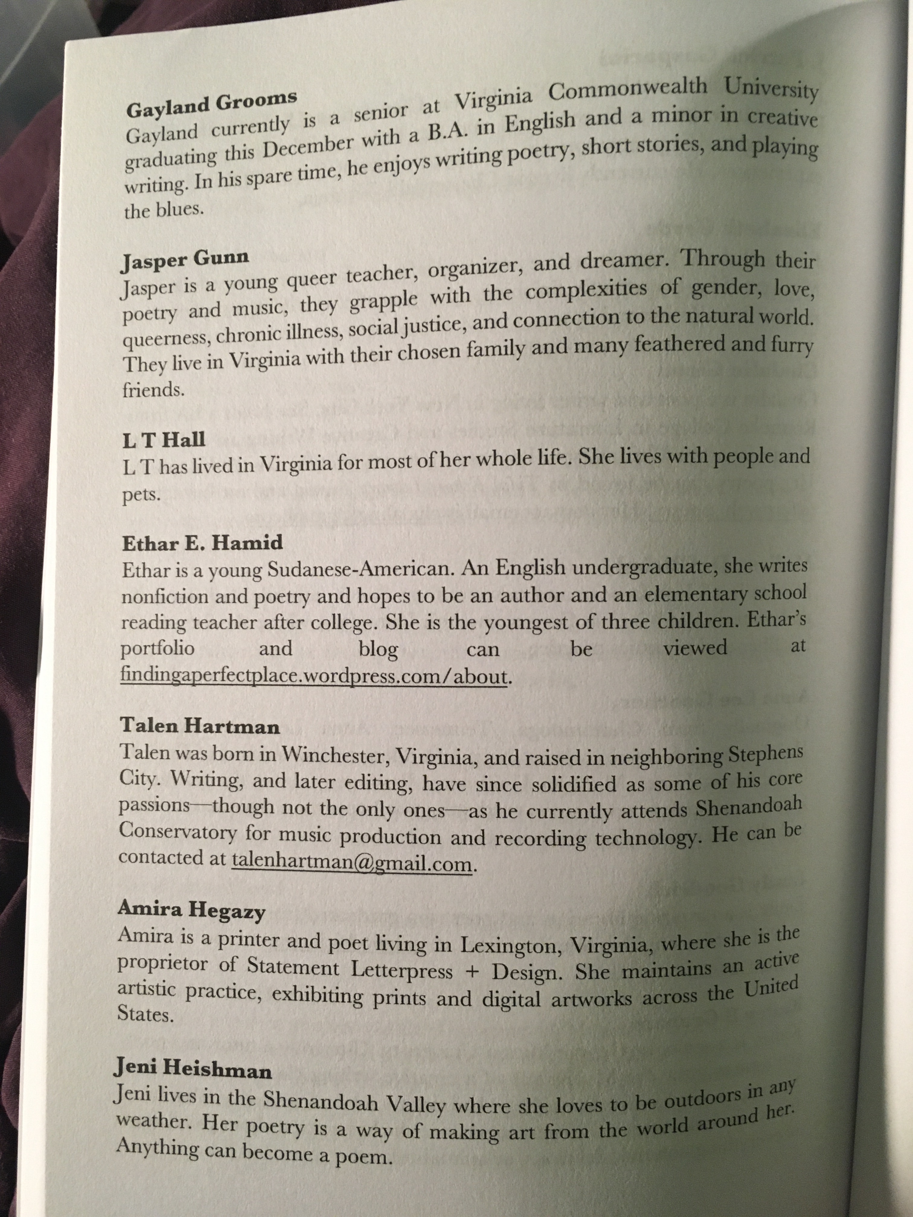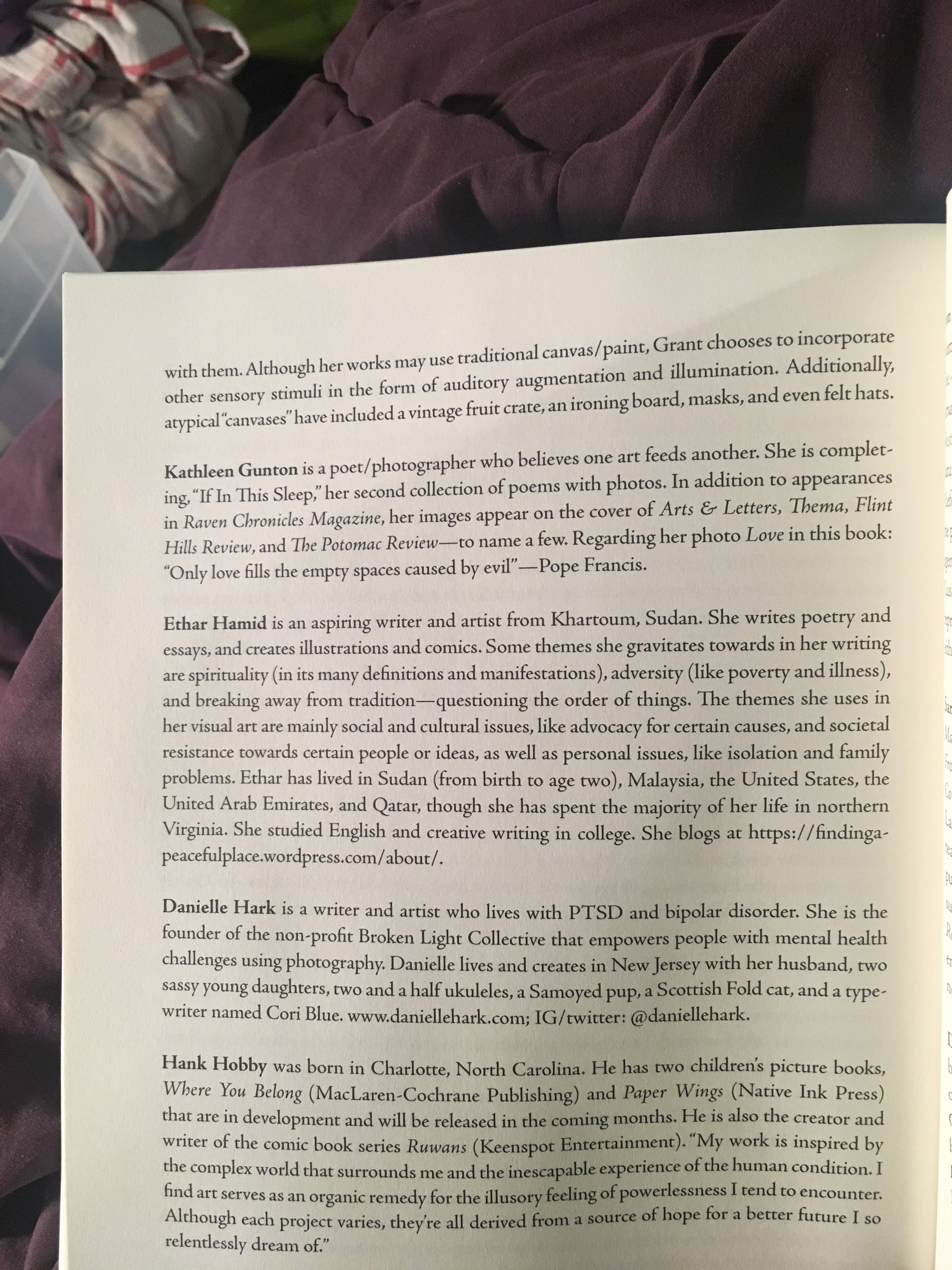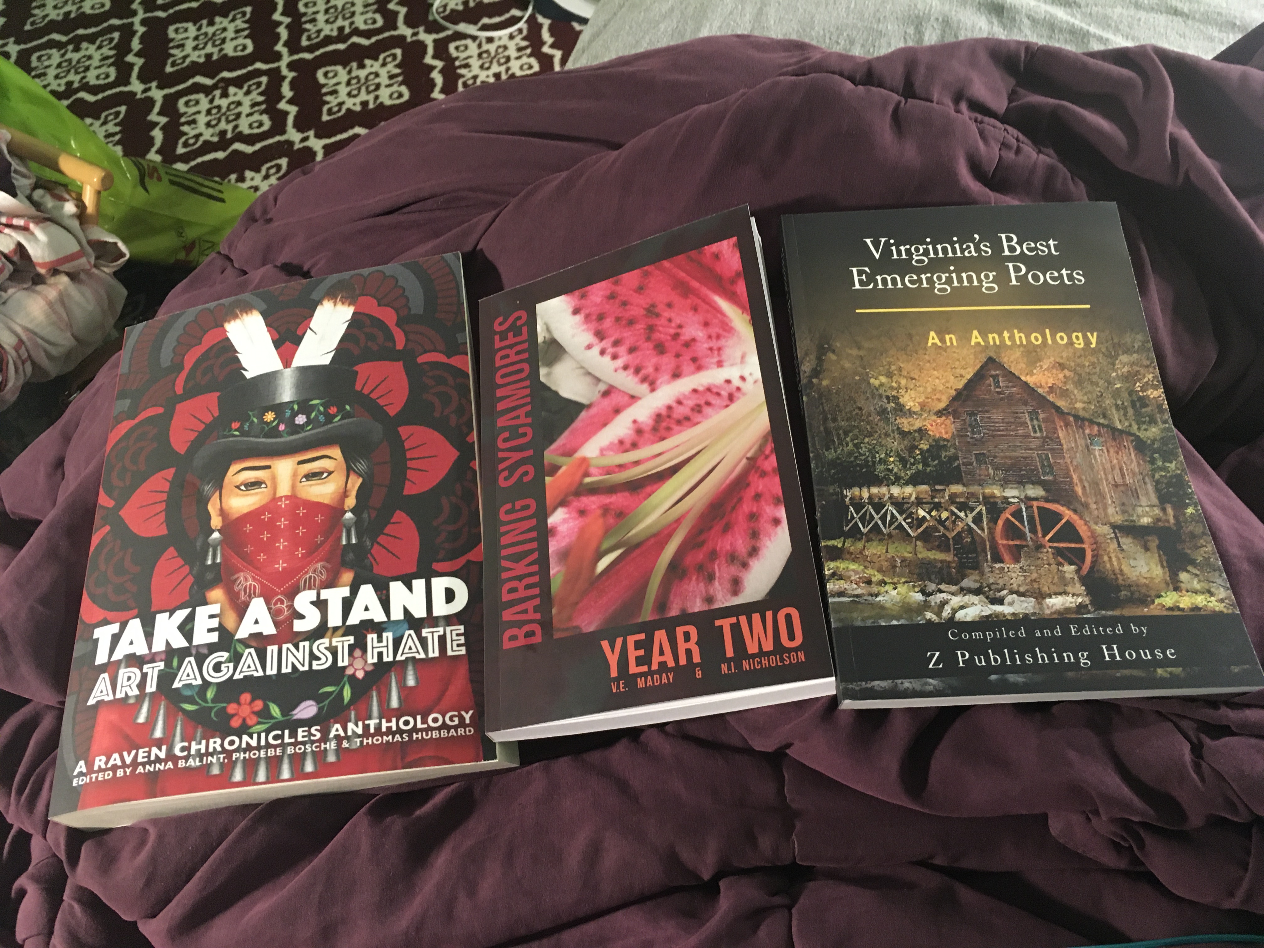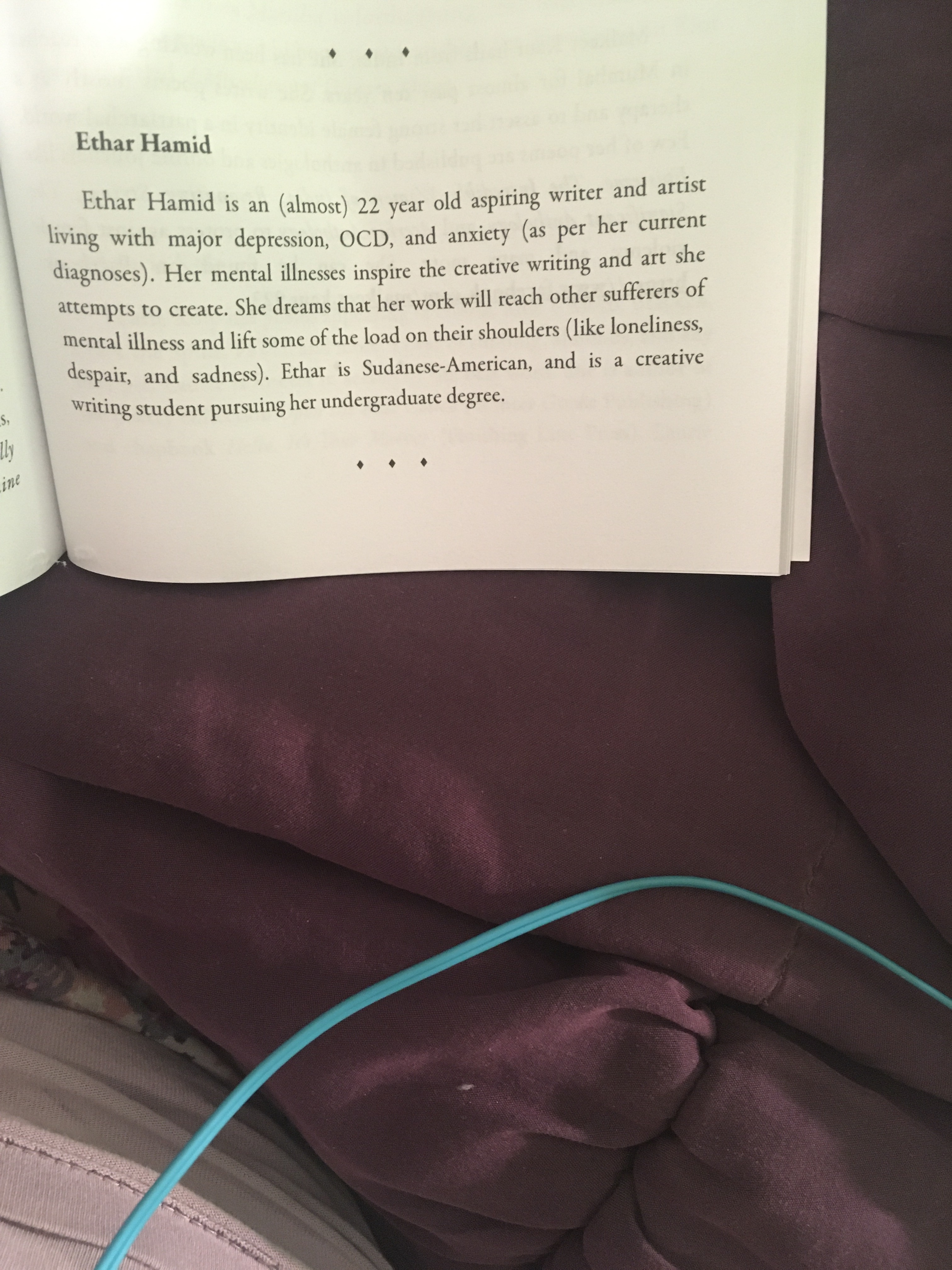 hey. :3 These are some anthologies that I’ve been in. | I’ve also been published in print editions of my college’s literary magazine–Volition literary magazine, the undergraduate literary mag. of George Mason University. -and I’ve also been in print editions of Doll Hospital Journal, a print literary journal on mental health. (It’s based in the U.K., and was founded by Bethany Lamont, a writer, artist, researcher, and mental health advocate.) And I’ve also been in a couple of print issues of Islamic Horizons, the magazine from ISNA, the Islamic Society of North America. (These specific publications wit my creative writing wrk in them can be found in the ‘Writing’ section of the menu/sidebar. :3 ).
